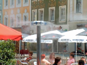 Todas estas opciones con cuadro de luz para el accionamiento de esta. Climatización (frío- calor)  | |  | |  | |  | Equipos de climatización (frío-calor) | | Farolas de calor lacadas con termostato | | Conductos interiores por diversas salidas para repartir el calor o frío por todo el interior. Los conductos pueden realizarse en PVC, chapa galvanizada, pueden quedar vistos o ocultos entre el techo y doble techo con varios puntos de salida | | Evaporativos, para lograr tanto en el interior como en el exterior bajar algunos grados la temperatura |