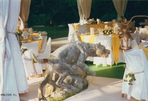 Antorchas y arboles de velas  | |  | |  | |  | Arboles altos de hierro con diversas ramificaciones y vasitos con velas en sus extremos, para darle más importancia a cualquier espacio de una manera original | | Candiles de cristal envejecidos con picas de hierro envejecidas, con vela en el interior (También pueden ser tanto los farolillos como las picas en color plata,dando así un aspecto a la decoración más actual) | | Antorchas de bambú, para crear pasillos, delimitar zonas o crear diferentes ambientes | | Antorchas romanas con recipientes de terracota, para crear pasillos, delimitar zonas o crear diferentes ambientes |