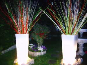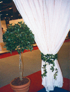 Plantas altas con sus maceteros  | |  | |  | |  | Lámparas altas iluminadas y composiciones decorativas acordes con el tipo de decoración restante | | Arboles altos de bola con tronco de madera trenzados y maceteros color terracota y abrazaderas para las cortinas realizadas con plantas | | Arboles altos para darle empaque a cualquier entrada realizados tanto en terminación plata como en terminación oro (junto con los maceteros altos iluminados crea un gran efecto visual ) | | Plantas altas de aprox.1,60 h con tronco de madera trenzado y maceteros color terracota |