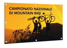 | |  | Pequeñas o grandes pancartas publicitarias para fachadas, campos deportivos, eventos promocionales, etc... | | Con posibilidad de estampar la fotografía deseada y con ollados metálicos en los extremos para su facil colocación |